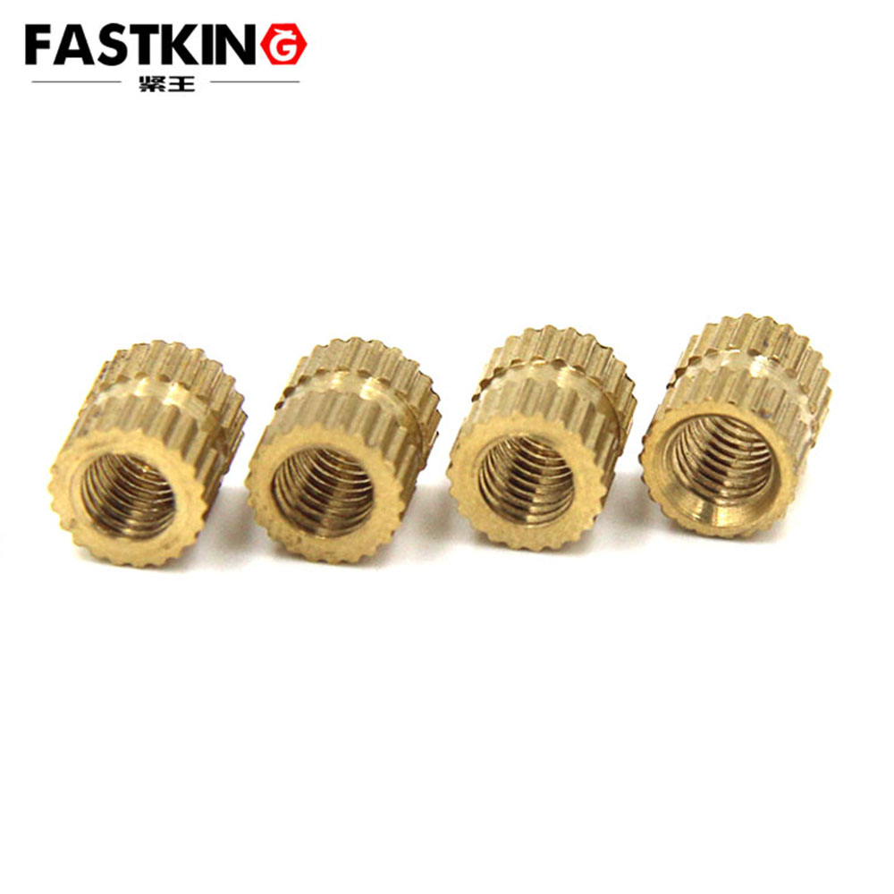 應(yīng)用在注塑中的銅螺母外形一般呈壓有各形式花紋的圓形,模具熱熔的一般是圓柱形,熱壓入或冷壓入銅螺外形都有一定錐度或帶有倒刺狀。